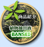 「BANSEI」は柿の葉、イタドリ、ヨモギなどの成分を特別な方法にて抽出した成分です。その効果を物質に定着させることにより酸化還元作用、マイナス、プラスイオンの調整、抗菌、消臭等威力を発揮します。